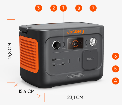 Explorer 300 Plus è una power station portatile con inverter a onda sinusoidale pura da 300 W (picco di 600 W) e una capacità di 288 Wh. È in grado di caricare fino a 4 dispositivi contemporaneamente, grazie alle sue uscite AC 1, USB-A 1 e USB-C 1, rendendo la ricarica di più dispositivi facile e veloce. Inoltre, è così leggero e compatto da poter essere inserito in uno zaino, facilitandone il trasporto.