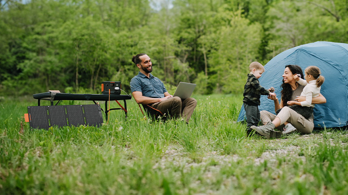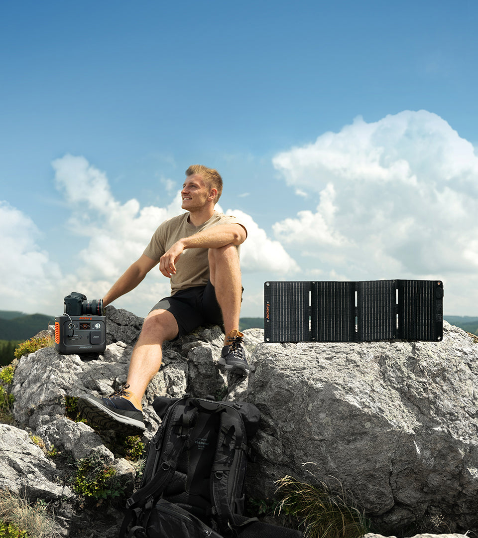 Explorer 300 Plus può essere caricato da qualsiasi pannello solare Jackery. L'avanzata tecnologia IBC (Interdigitated Back Contact) con contatti elettrici sul retro dei pannelli solari assicura il massimo assorbimento della luce e offre un aspetto raffinato ed elegante. Con un'elevata efficienza di conversione solare fino al 25%, sono perfettamente adatti per le attività all'aperto e per le emergenze elettriche.